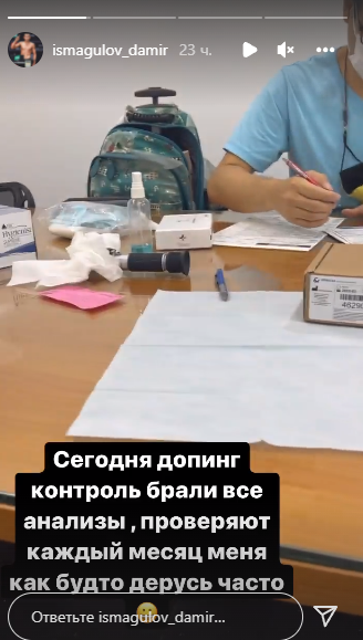 Российский боец-казах Дамир Исмагулов в сториз в Instagram рассказал о тестах на допинг, передает медиа-портал Сaravan.kz.
