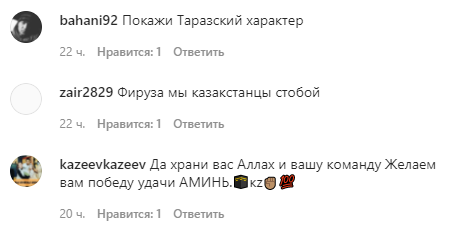 Казахстанцы отреагировали на это в комментариях и рассказали, чего ожидают от Фирузы в следующем бою: