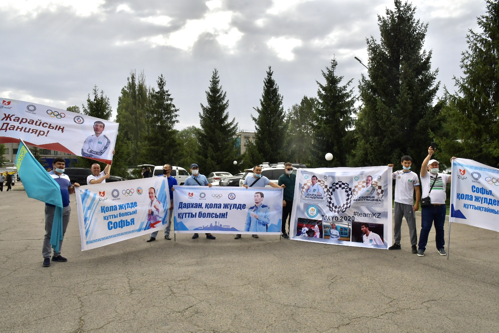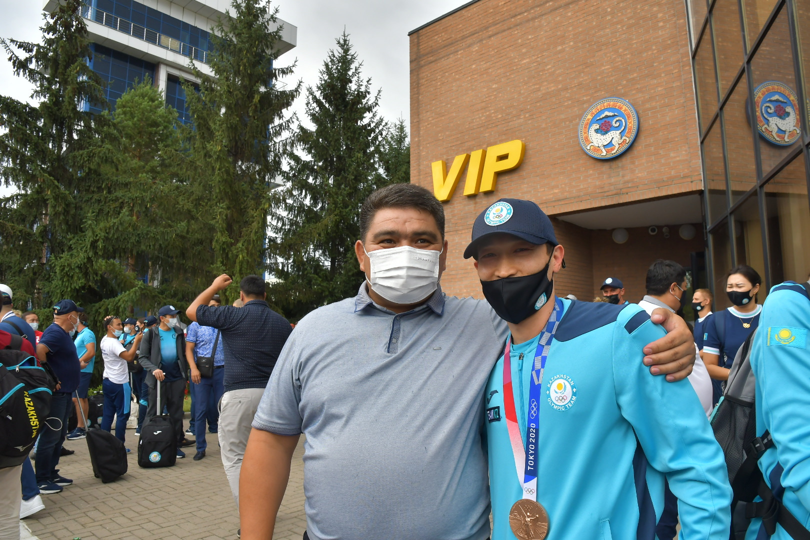 Среди спортсменов, вернувшихся с Олимпиады, присутствовали бронзовые призеры ОИ-2020 боксеры Сакен Бибосынов и Камшыбек Кункабаев, а также каратисты Софья Берульцева и Дархан Асадилов.