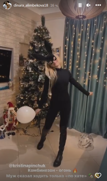 Отношения у супругов хорошие. Сегодня Динара показала свой новый комбинезон, выполненный в виде черного кролика.