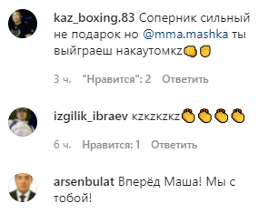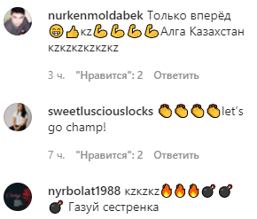Казахстанцы поддержали её и высказали свои пожелания и мысли по поводу предстоящего боя: