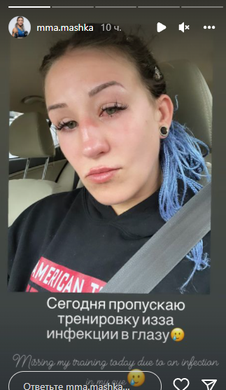 Кстати, сегодня она сообщила, что пропускает тренировку из-за инфекции в глазу: