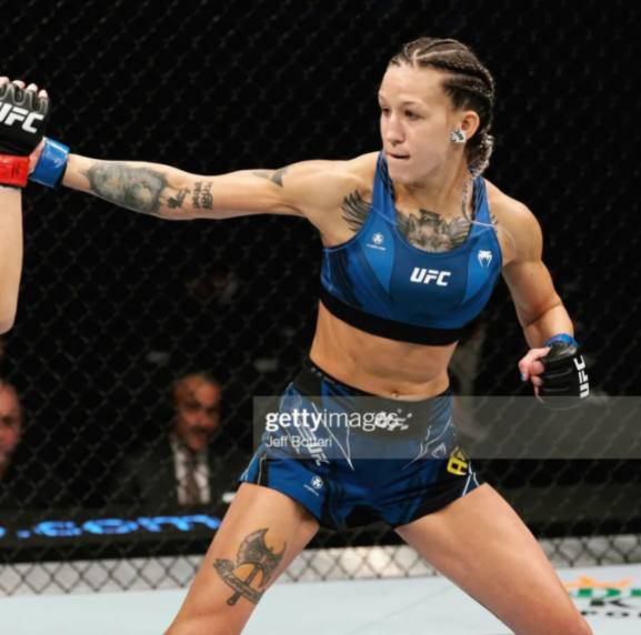 Агапова поделилась фотографией, где она в октагоне готовится к удару и подписала её: "У меня на работе если плохо работаешь, то тебя увозят на скорой помощи".