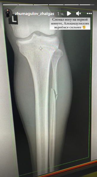 Казахстанец признался, что провёл четвёртый бой в UFC с серьёзным повреждением ноги. Он выложил фотографию рентгена, которую подписал: "Сломал ногу на первой минуте, Альхамдулиллях, вернёмся сильнее".