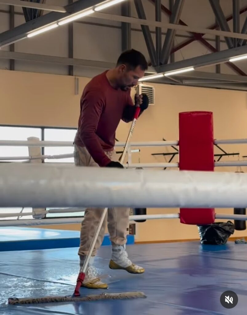 На записи боксер, несмотря на свои титулы, лично моет покрытие ринга шваброй. Он объяснил, что считает ринг вторым домом.