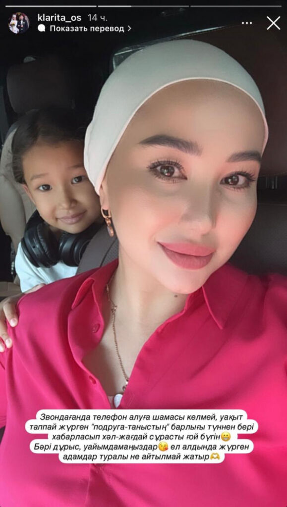 «Всю ночь звонили «подруги-знакомые», которые обычно не берут телефон, у которых не бывает времени. Спрашивали, как дела. Все хорошо, не беспокойтесь. Что только не говорят о тех, кто ведет страну вперед», — написала Клара Иса в сториз в своем Instagram, прикрепив фото с одной из их с Жанкошем дочерей.
