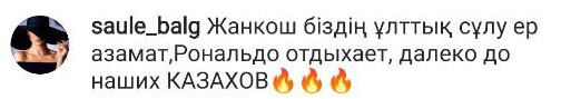 — Жанкош наш красавец-гражданин, Роналдо отхыает, далеко до наших казахов.