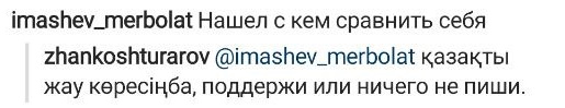 — Ты казахов врагами считаешь, что ли. Поддержи или ничего не пиши.