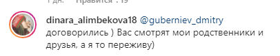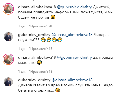В результате у него с Динарой в комментариях произошла переписка, в ходе которой спортсменка потребовала от него правдивой информации: