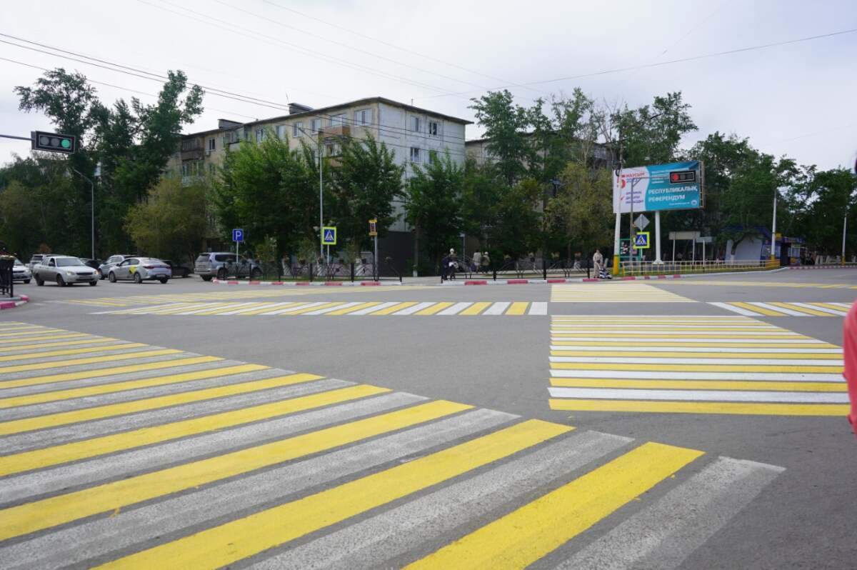 В Костанае на одной из дорог появилась диагональная пешеходная разметка