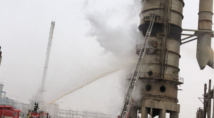 В Актау загорелась и рухнула огромная башня с химическими отходами