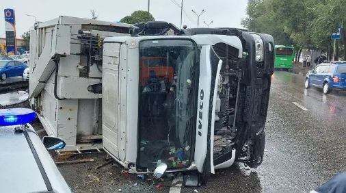В Алматы водитель мусоровоза пытался провезти человека через блокпост