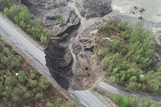 В Индии из-за оползня обвалилась часть горы вместе с дорогой