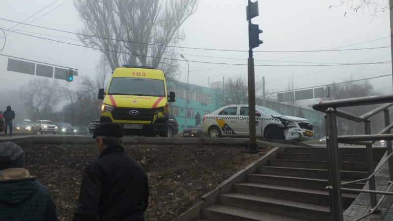 Скорая столкнулась с такси в Алматы