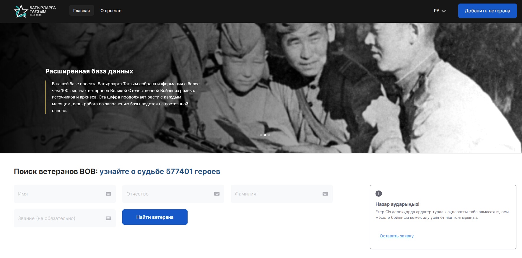 Портал для поиска информации о ветеранах ВОВ запустили в Казахстане